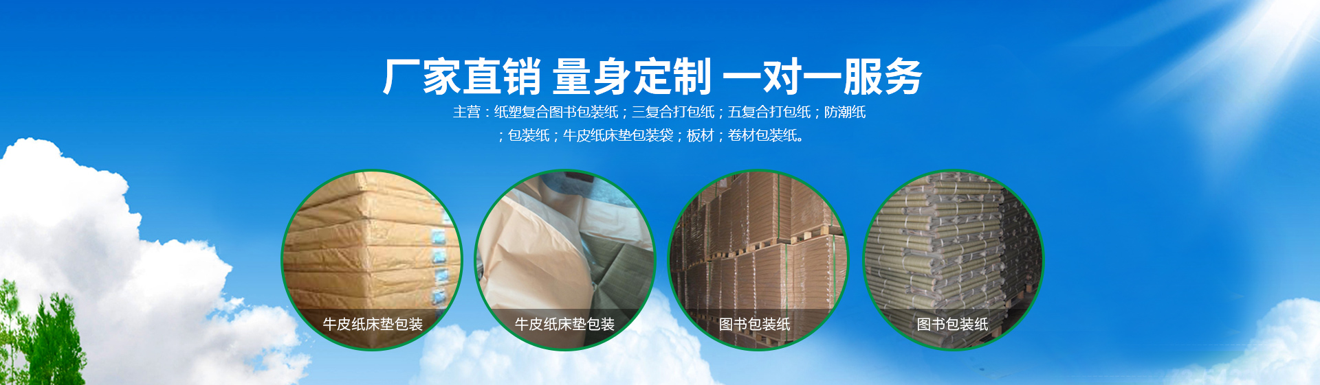 紙塑復(fù)合圖書(shū)包裝紙;三復(fù)合打包紙;五復(fù)合打包紙;防潮紙;包裝紙;牛皮紙床墊包裝袋;板材 ;卷材包裝紙。